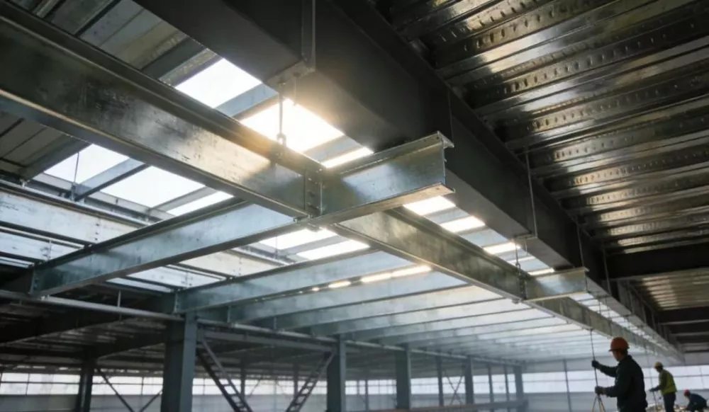 อุตสาหกรรมวัสดุก่อสร้าง: สถานการณ์การติดตั้งแปและตงหลังคาสำหรับการประชุมเชิงปฏิบัติการโครงสร้างเหล็ก