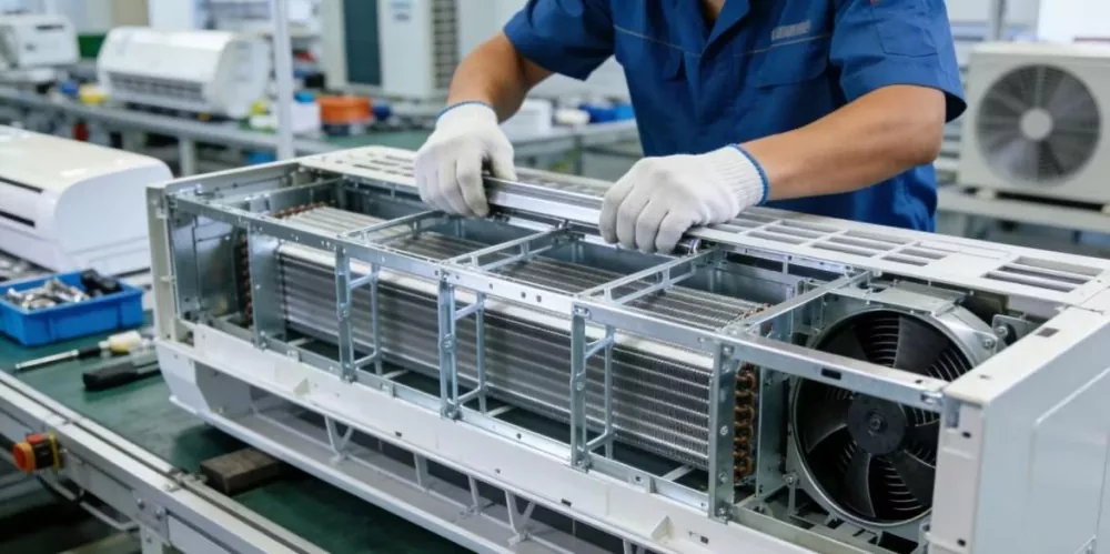 ใช้สำหรับกรอบเปลือกนอกและส่วนประกอบรองรับภายในของตู้เย็นและเครื่องปรับอากาศ โครงฐานสำหรับเครื่องซักผ้า กรอบและขายึดสำหรับจอแสดงผล กรอบด้านนอกและส่วนประกอบรองรับที่เป็นสื่อกระแสไฟฟ้าภายในสำหรับการชาร์จเสาเข็ม ฯลฯ จำเป็นต้องมีพื้นผิวที่มีน้ำหนักเบา ความแม่นยำสูง และสวยงามสวยงาม และสามารถรวมกระบวนการเพิ่มเติม เช่น การเจาะและการดัดงอได้