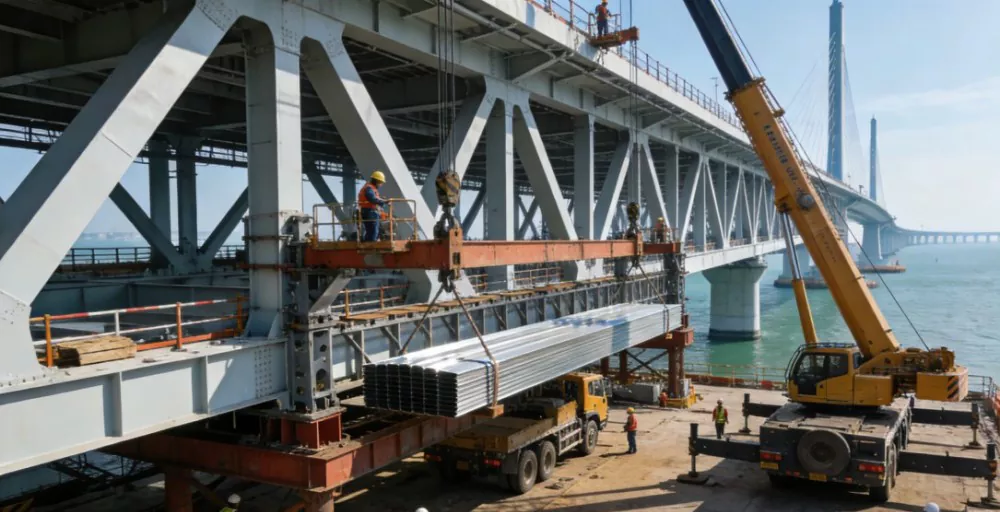โครงการสะพานฮ่องกง-จูไห่-มาเก๊าใช้เหล็กแผ่นรีดร้อนอย่างกว้างขวางซึ่งผลิตโดยใช้เทคโนโลยีการรีดและการทำความเย็นแบบใหม่ที่มีการควบคุมสำหรับเหล็กสะพาน รวมถึงเสาเข็มท่อและส่วนประกอบโครงสร้างสะพานนำทางหลัก รวมกว่า 30,000 ตัน เหล็กแผ่นรีดร้อนชนิดม้วนระบายความร้อนด้วยน้ำที่ใช้มีความแข็งแรง ความเหนียว ความสามารถในการเชื่อม และการกัดกร่อนของน้ำทะเลเป็นเลิศ แก้ปัญหาการแยกชั้นหลังการเชื่อมและความเหนียวไม่เพียงพอในเหล็กสะพานแบบดั้งเดิม ทำให้เหมาะสำหรับสภาพแวดล้อมทางธรรมชาติที่รุนแรงของสะพานข้ามทะเล ส่งผลให้โครงการได้รับการยอมรับว่าเป็นหนึ่งใน "เจ็ดสิ่งมหัศจรรย์ใหม่ของโลก"