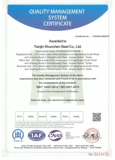 Shunchen ได้รับการรับรอง IS09000 และการรับรองระบบ 3A